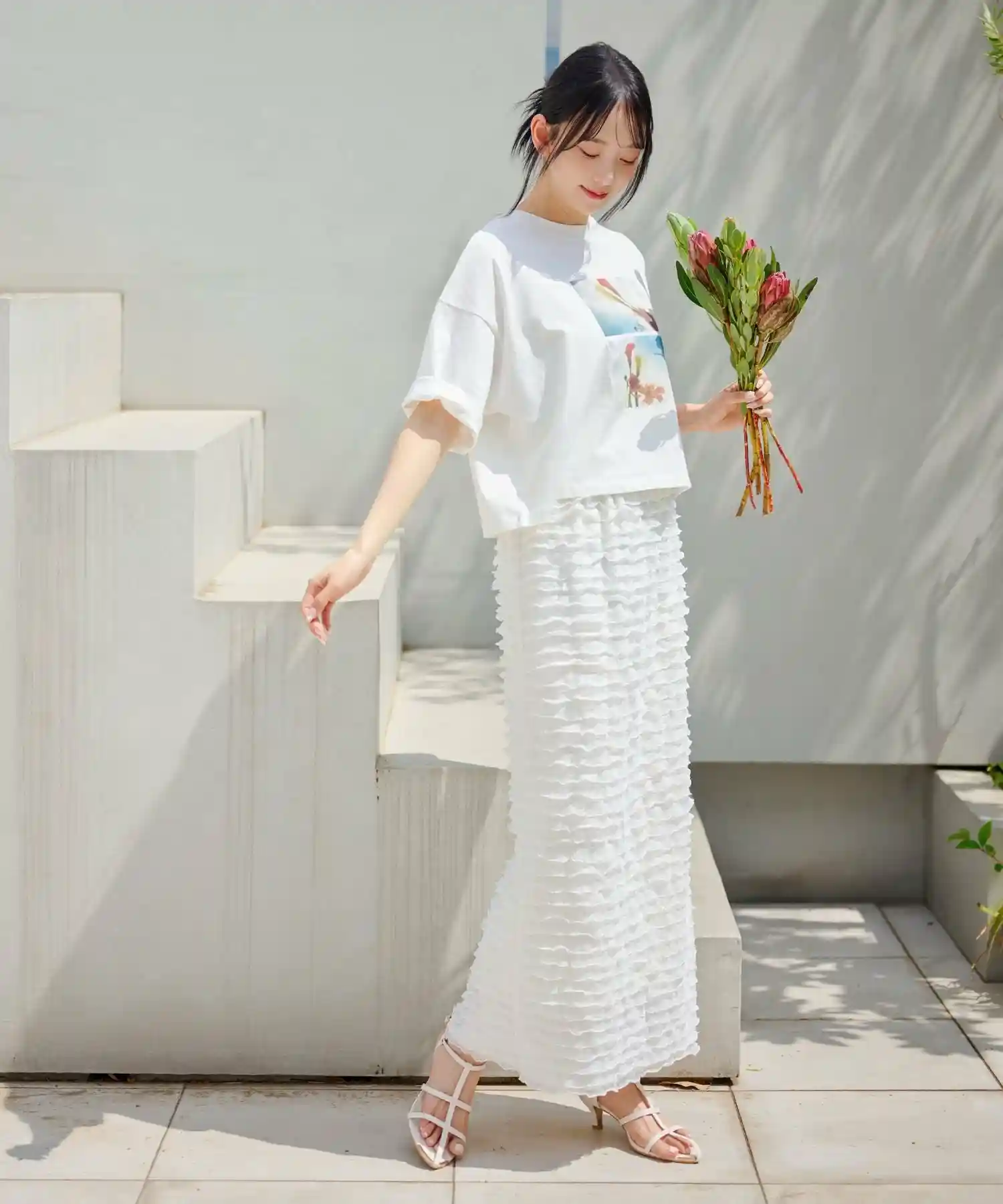 モチーフフリル袖タイト