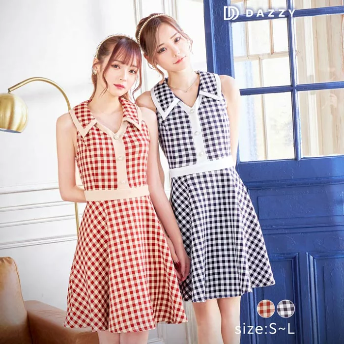 襟付きAラインミニドレス